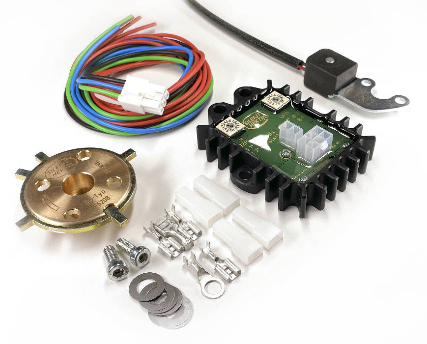 Different kits are required depending on the specific model Moto Guzzi alternator fitted, primarily there are three kit types ("B" type, "D" type or "S" type). Each set-up is specifically developed to work on the alternators and charging system fitted to Guzzi models/years made either by Bosch, Ducati or Saprisa. The ignition curve is fully adjustable and can be minutely adjusted to be absolutely perfect for the particular bike. We offer a full technical support service based in the UK and a full fitting service by NBS.
